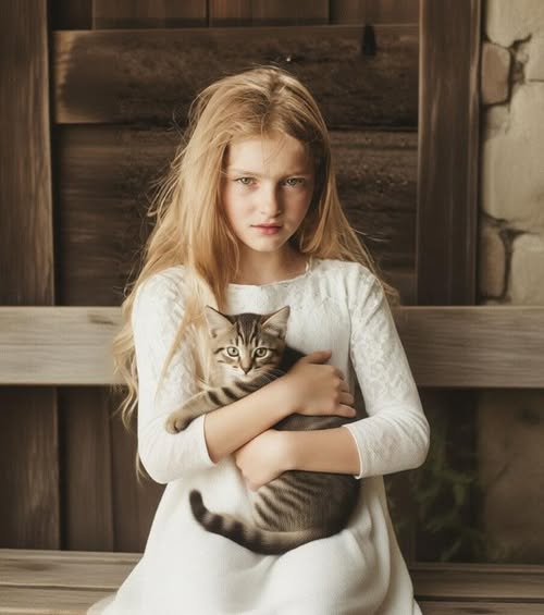 Поздний весенний вечер 1945 года застилал небо над деревенскими крышами легкой, прозрачной дымкой. Последние лучи солнца цеплялись за резные наличники старого дома, окрашивая их в золотисто-медовые тона. За домом, на завалинке, еще хранившей дневное тепло, сидела двенаридцатилетняя девочка. В ее тонких, не по-детски упрямых пальцах беспомощно упирался худенький, лохматый комочек серой шерсти с огромными, не по размеру, ушами.