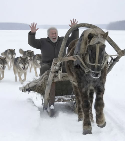 И конь понёсся. Это уже не было бегом. Это был полёт низко над землёй. Тот путь, что в обычный день занимал добрых полчаса, промелькнул в вихре снежной пыли и ледяного ветра. Василий Семёнович не смел оборачиваться, он чувствовал спиной их присутствие — холодное, голодное, неумолимое. Он чувствовал их взгляды, будто острия, упирающиеся в его затылок. Мысль пульсировала одна, простая и ясная, как удар колокола: «Только бы успеть. Только бы до первых огней».