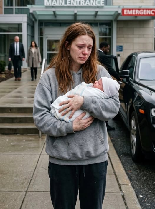 Меня только что выписали из больницы после родов. Всё тело болело, ноги едва держали меня, а новорождённая дочь спала у меня на груди. Медсестра аккуратно усадила меня в инвалидное кресло и ласково спросила: «Ваш муж приедет за вами?»